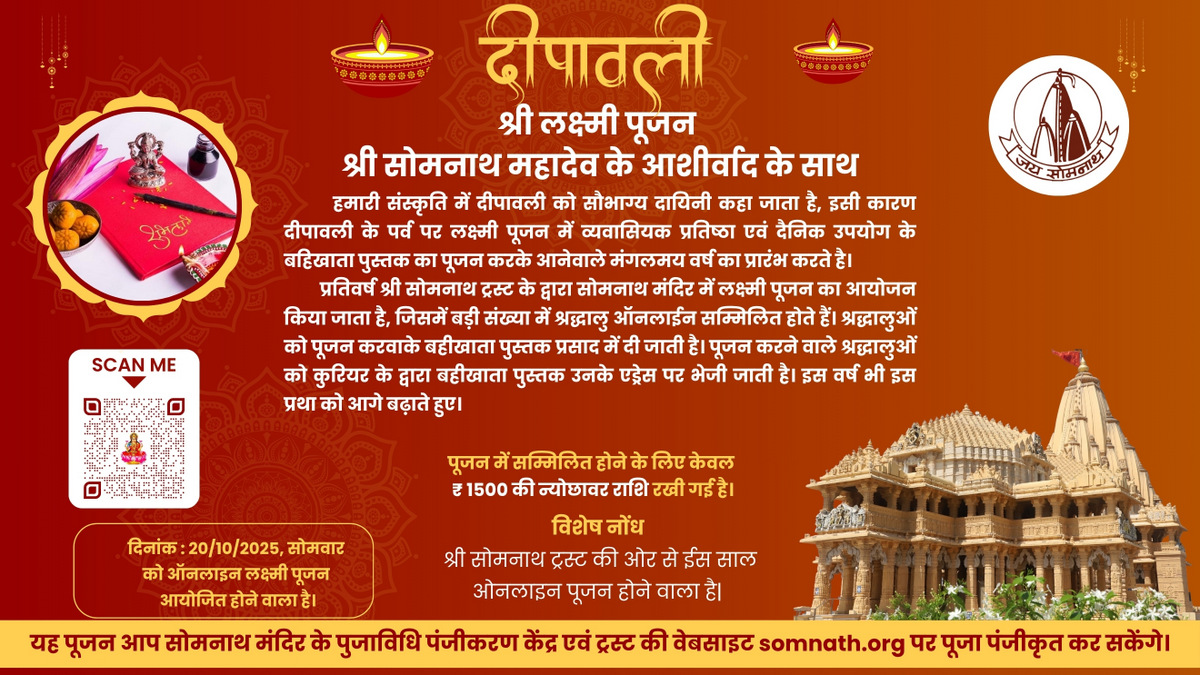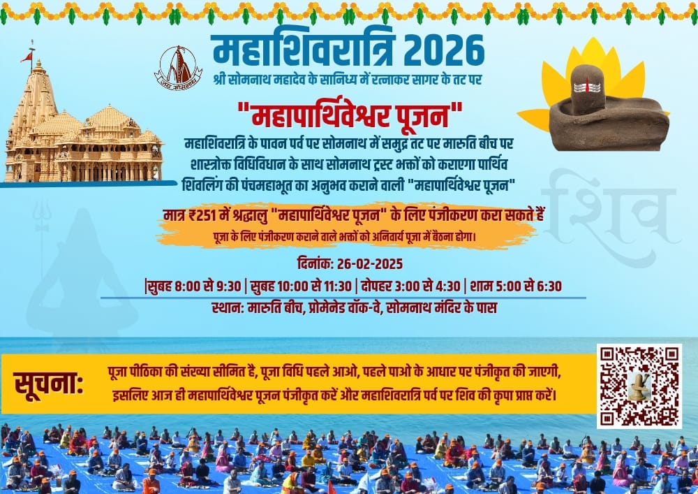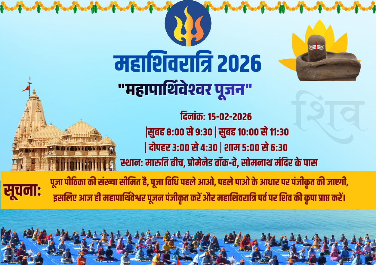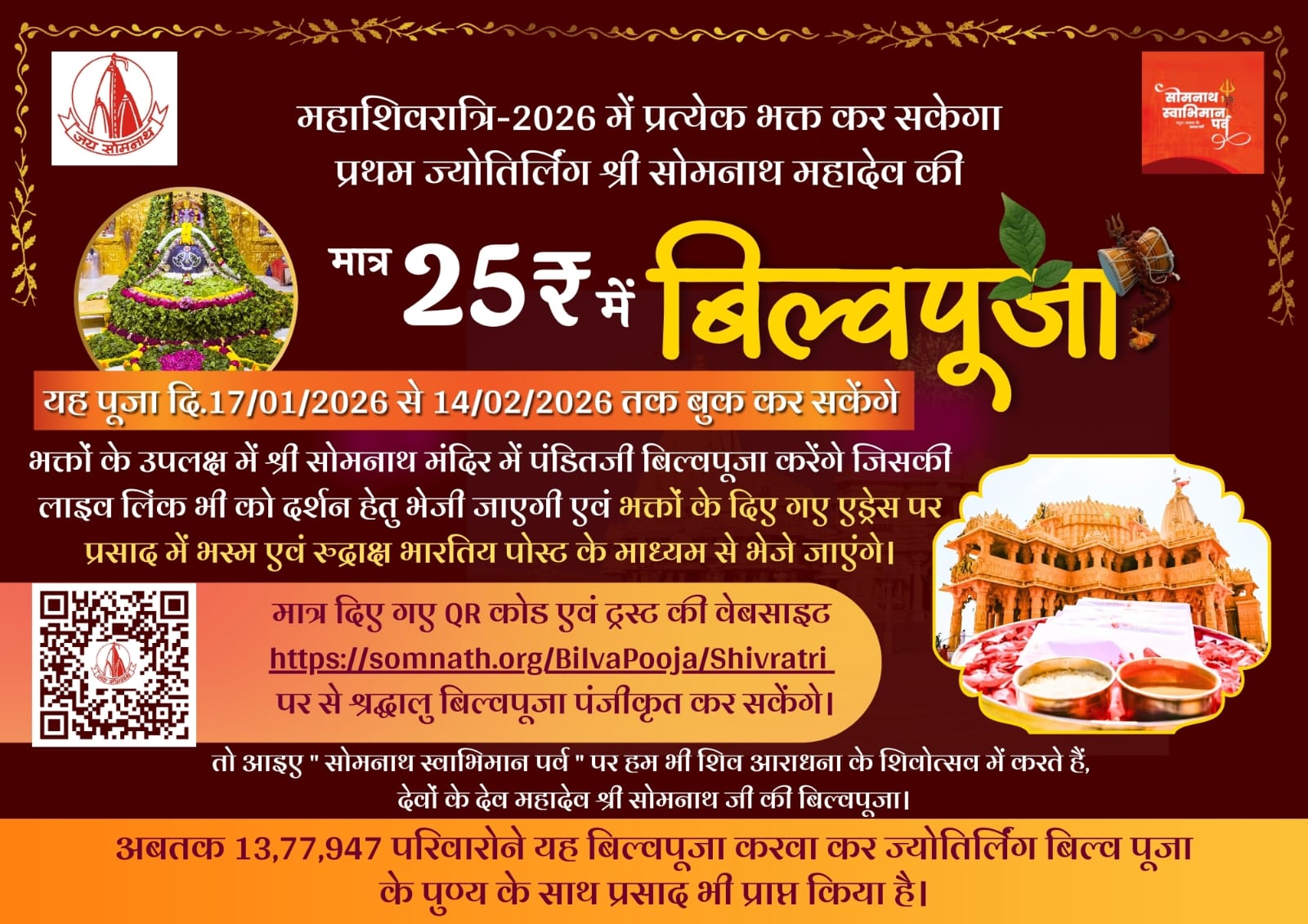 Shree Somnath Trust welcomes you to the holy place of the First Aadi Jyotirling Shree Somnath Mahadev and the sacred soil where Lord Shri Krishna took his last journey to their Neejdham. The temple is built at the shore of the Arabian ocean on the western corner of Indian subcontinent.
