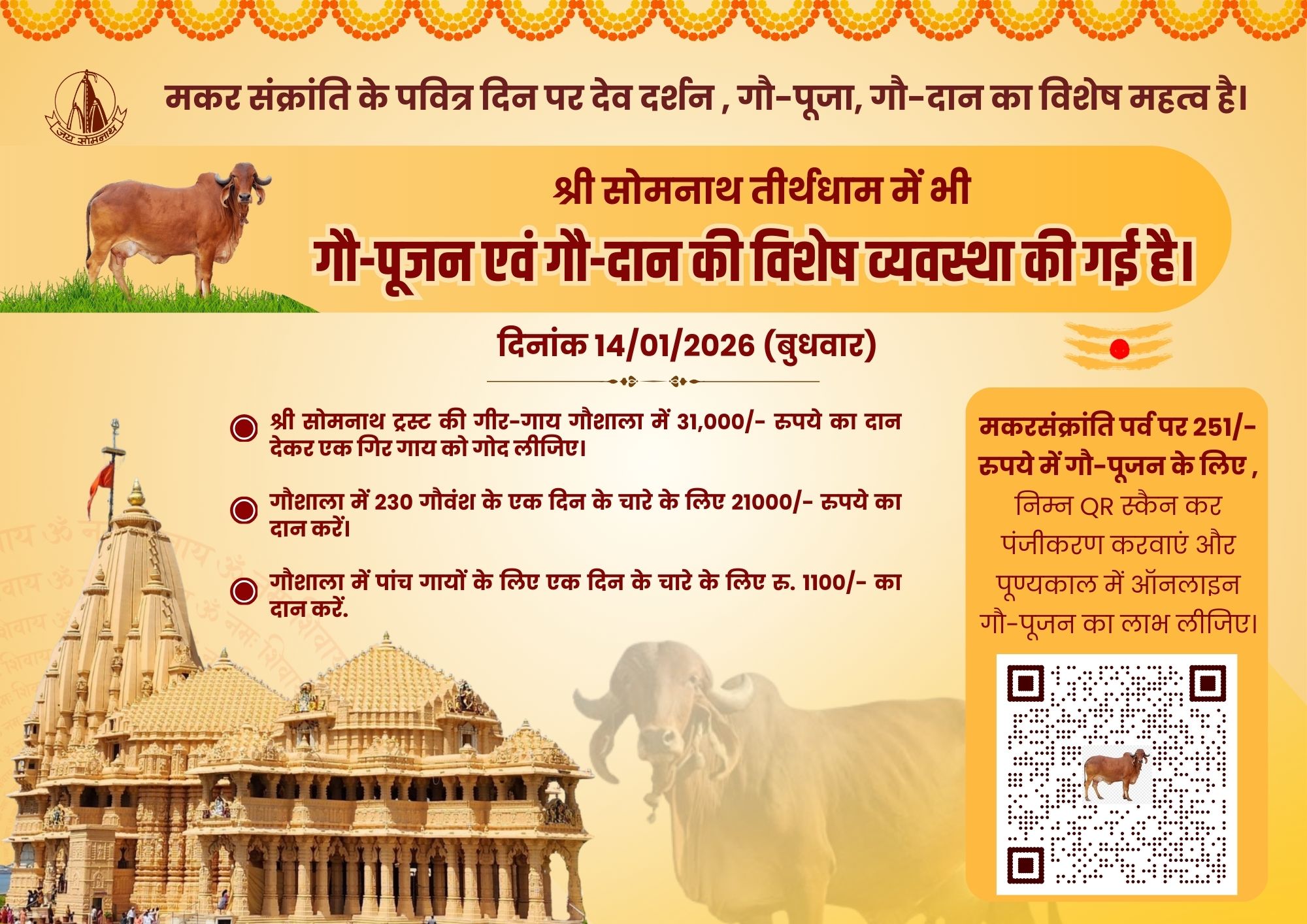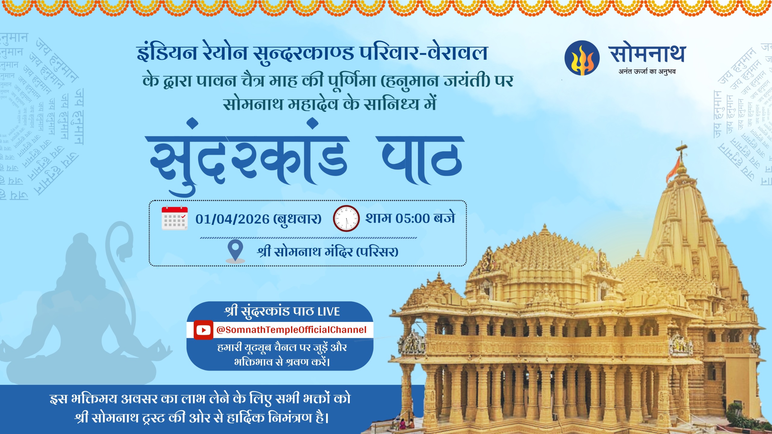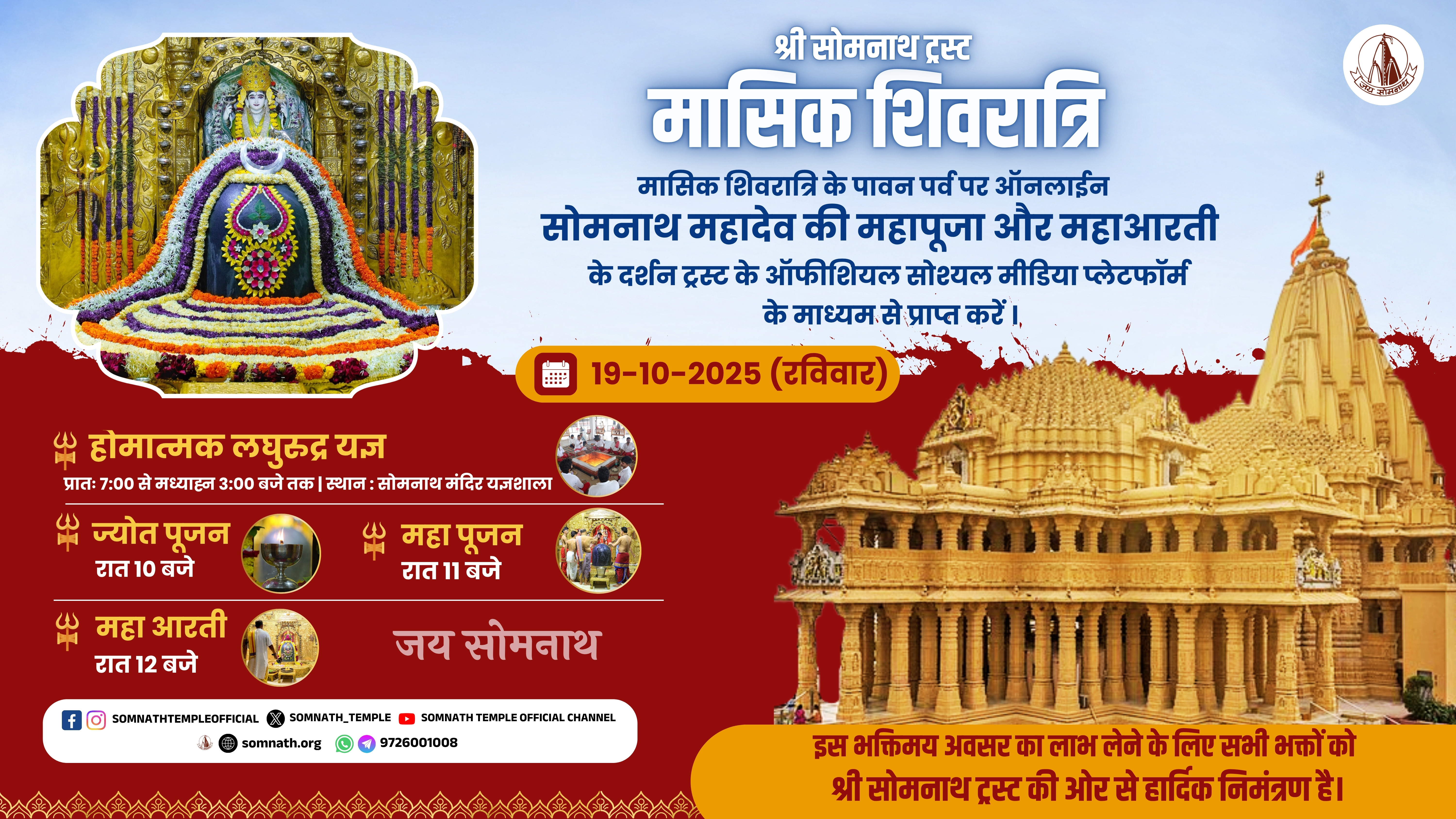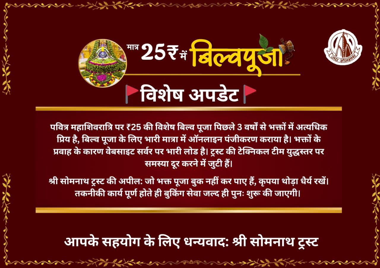 Shree Somnath Trust welcomes you to the holy place of the First Aadi Jyotirling Shree Somnath Mahadev and the sacred soil where Lord Shri Krishna took his last journey to their Neejdham. The temple is built at the shore of the Arabian ocean on the western corner of Indian subcontinent.